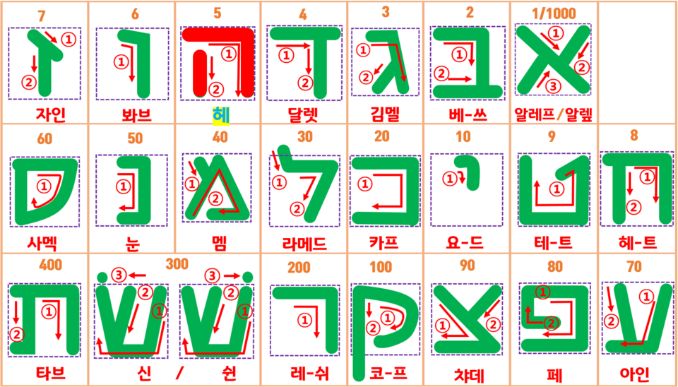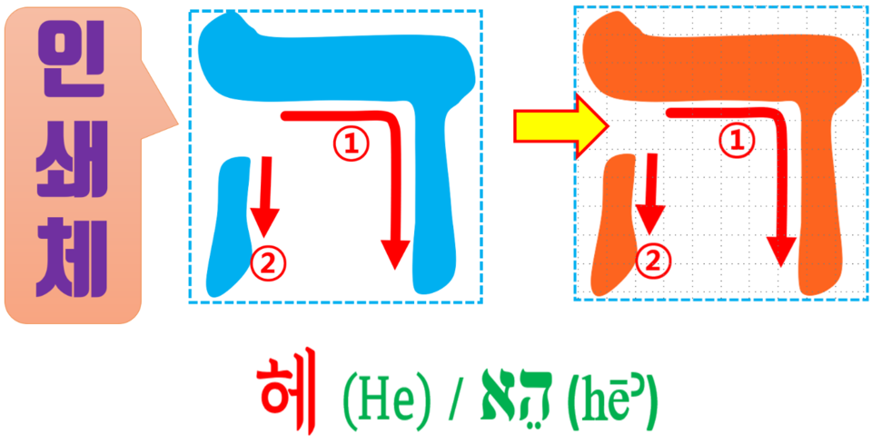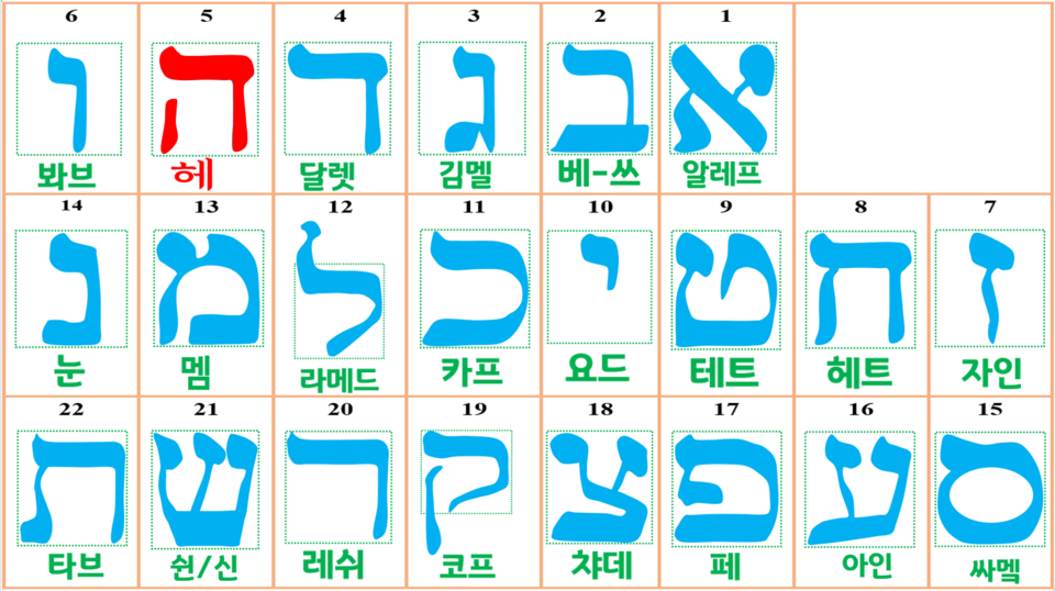 ▶헤(ה)의 영어 음역은 에이치 (h)로 표기한다.