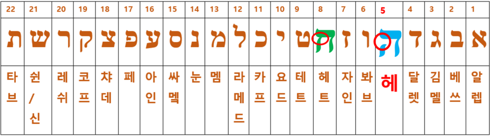 ▶붙으면 8번째 헤트(ח)란 글자가 된다.