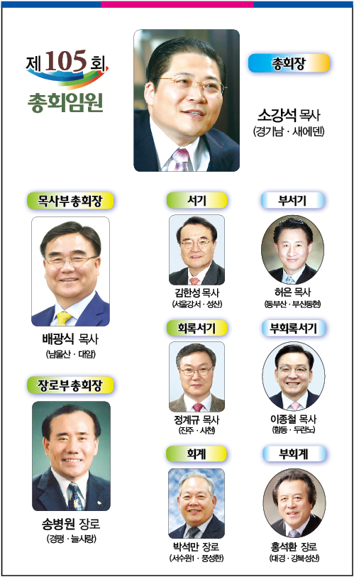 ▶선거관리위원(당연직) : 김종준 목사(꽃동산교회·동한서노회) 정창수 목사(산돌교회·전남노회) 박재신 목사(양정교회·북전주노회) ▶선거관리위원(영남지역) : 박성순 목사(봉덕교회·대구중노회).