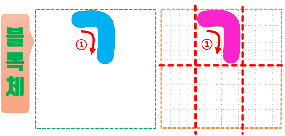 ▶성서 히브리어 22개 글자 중 17개 글자는 정사각형 안에 꽉 차게 쓴다