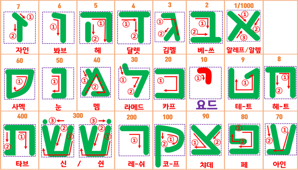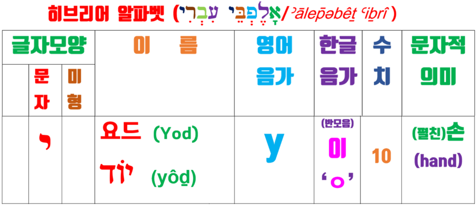 ▶요드 (י) 란 글자는 22개 글자 중 점과 같이 가장 작다.