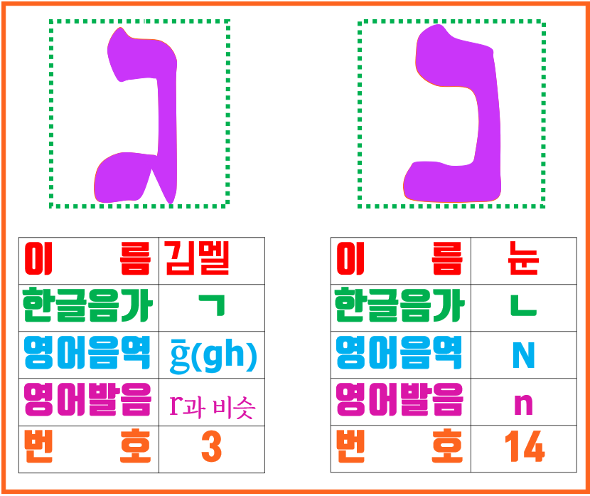 ▶페니키아어, 히브리어, 아람어, 고대 시리아어, 아랍어 (ن ) 까지 모두 눈(נ)이라고 발음한다.