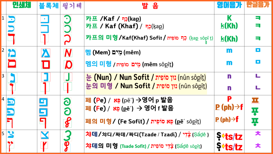 ▶꼬리형 글자를 히브리어로는 소핏(Sofit) 이라고 합니다.