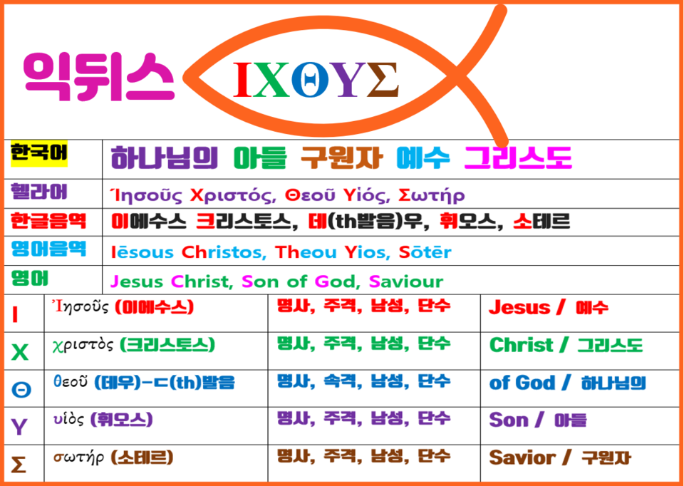 ▶참고로 코이네 헬라어에서는 물고기를 익뒤스(ἰχθὺς)라고 한다.