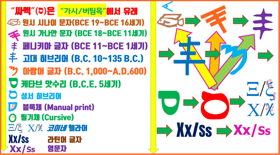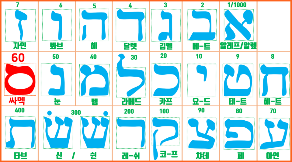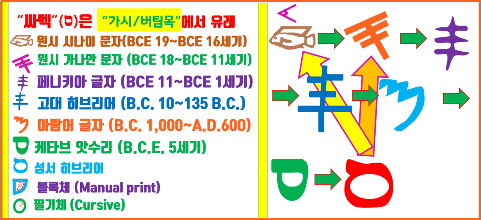 ▶싸멕(ס) 이라는 글자는 원시 시나이 시대에는 포식자로부터 양 떼를 지켜주는 물고기의 가시 모양에서 시작했다.