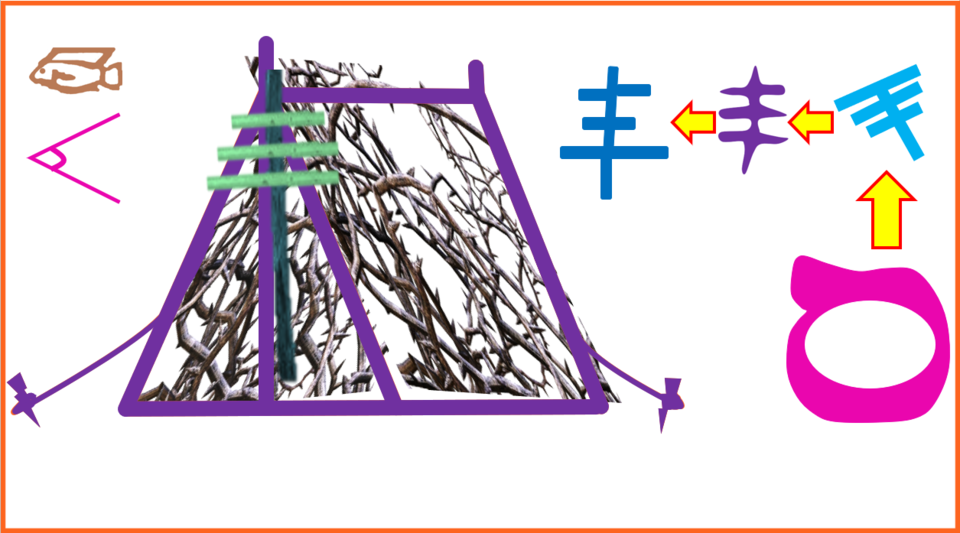 ▶2) 두 번째 유래설의 근거는 버팀목을 상징하는 그림문자를 사용한 것에서 찾는다.