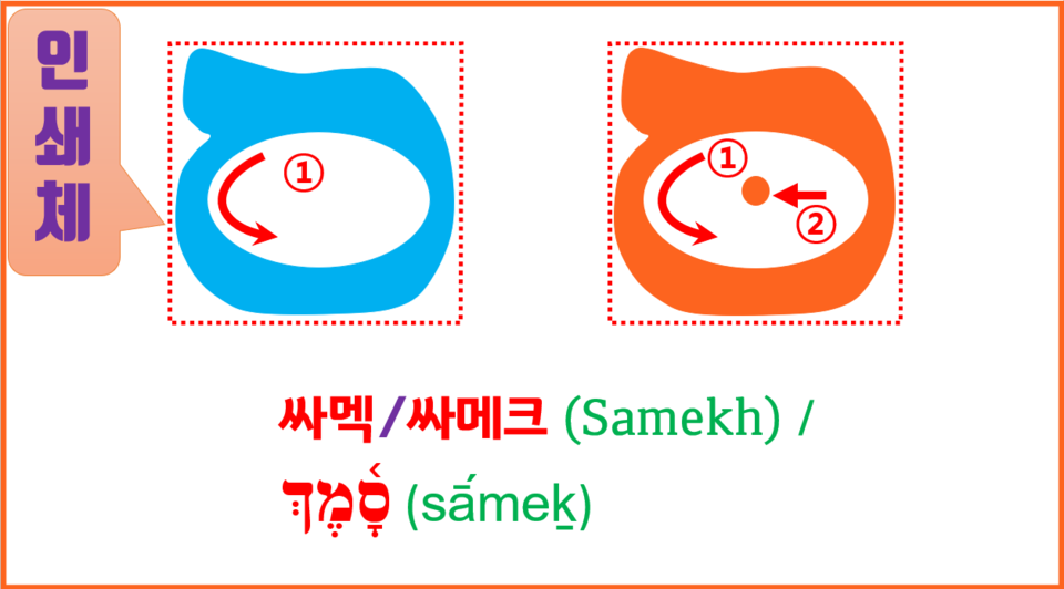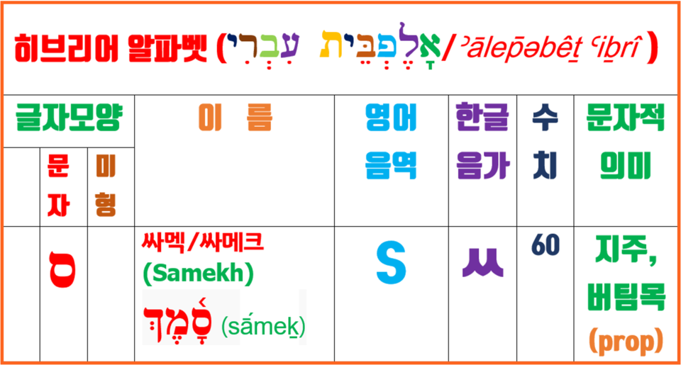 ▶현대 히브리어 싸멕/싸메크(ס)는 시대에 따라 크게 2가지설이 있다.
