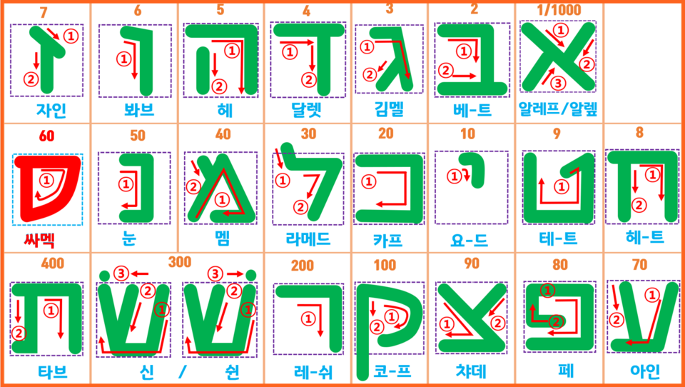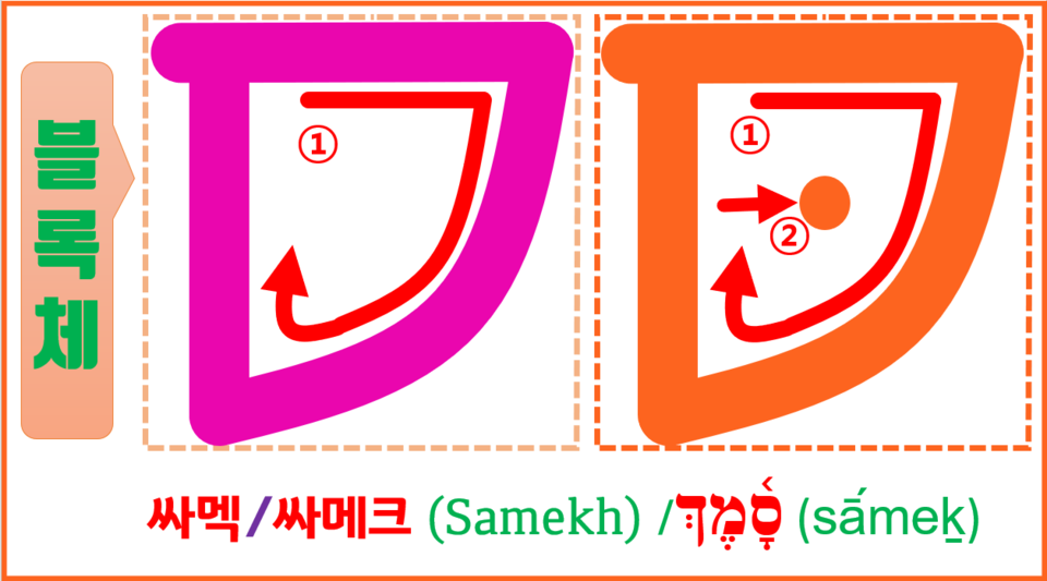▶붉은색 글자는싸멕(ס)의 블록체이다.