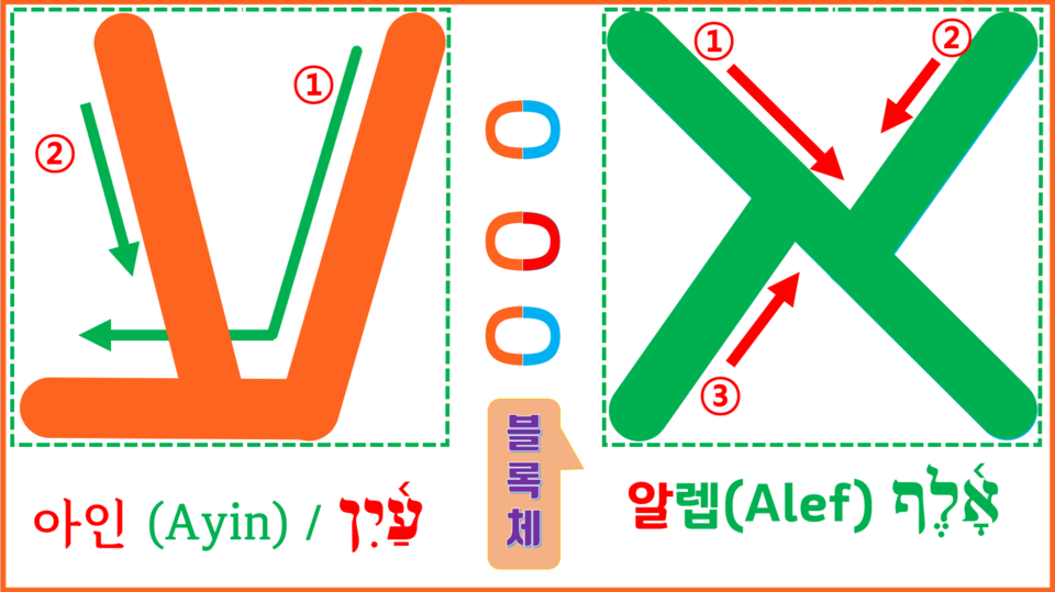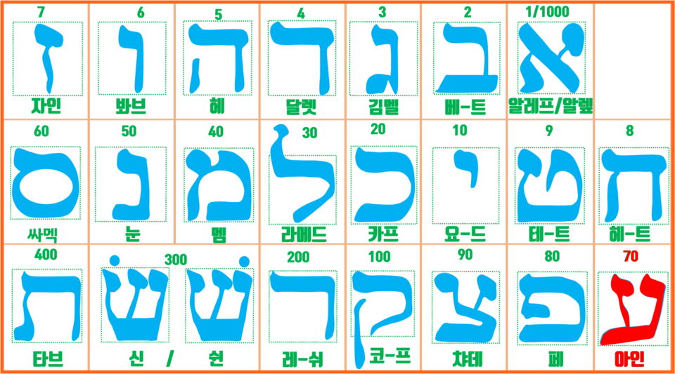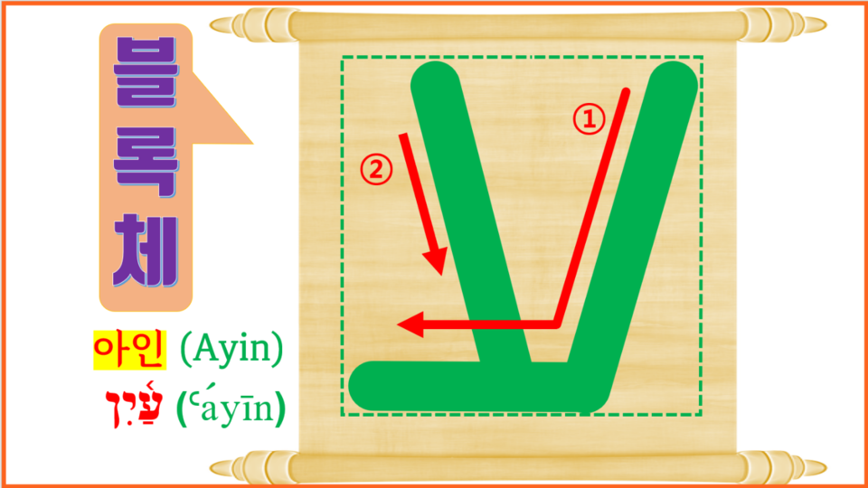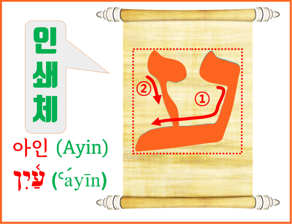 ▶붉은색 글자는 블록체 아인(ע)이다.