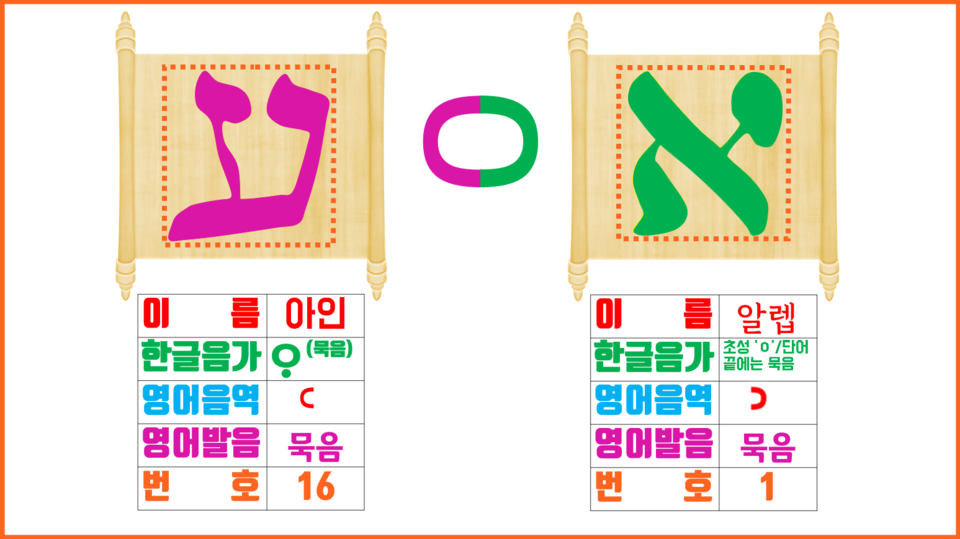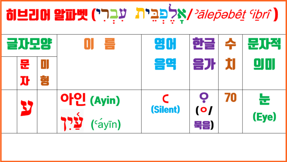 ▶아인(ע)과 알렙(א), 둘 다 묵음이다.