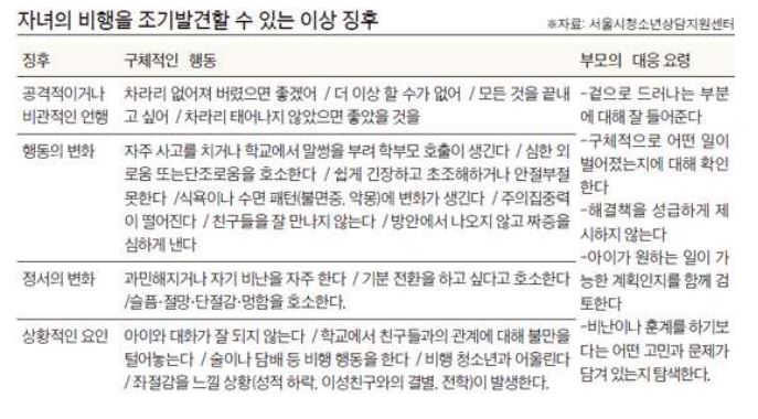 문제 청소년들을 위한 부모의 대처는 무엇일까요? 서울시청소년상담지원센터에서 소개한 아래 이미지같은 내용을 참고로 자녀들을 지도하면 좋을 것입니다.