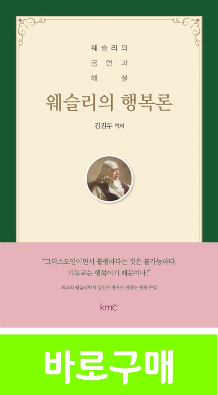 웨슬리를 이렇게 평가한다. ‘성경 좀 벌레’라는 별명을 얻을 만큼 성경을 많이 읽었다. ‘한 책의 사람’, ‘다독가’, ‘독서광’, ‘웨슬리의 지식 세계는 바다같이 넓고 깊다.’ 웨슬리의 신학의 주제는 ‘행복’이다. 그의 구원론도 행복론이다. 저자는 이렇게 외치고 있다. ‘모든 사람이 구원받을 수 있다’라는 웨슬리의 구원론의 명제를 ‘모든 사람이 행복할 수 있다’라는 말로 바꾸어 21세기를 살아가는 우리들에게 재해석해서 들려주고 있다.