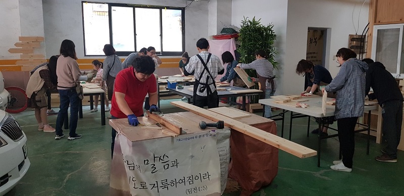 내가 지난 10년을 목수도 하고 인테리어도 하고 카페를 하며 이중직 목회를 했는데, 이제는 다른 일들은 멈추고 카페에 더욱 집중을 해야겠다는 생각을 했다. 성도들을 일주일에 한 번 만나는 것이 아니라 늘 만날 수 있는 공간의 의미로 건물 전체를 임대를 하고 지하는 목공실, 1층은 카페를 했다. 목공을 담당하는 목사님이 맡고, 카페는 카페를 담당하는 전도사님이 사역을 하면서 공동 목회가 가능해졌다. 인테리어 기술이 있다 보니 교회 근처에 카페와 파스타를 또 열었다. 그래서 교회 집사님들이나 청년들이 아르바이트를 하고 함께 하는 사람들이 많아졌다. 자연스럽게 집사님들의 남편 분들도 교회에 관심을 갖게 됐고 그분들과 교제를 이루면서 공동체가 자라는 것을 봤다.