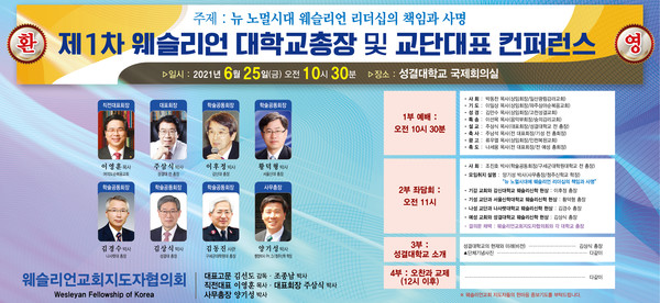 웨슬리언교회지도자협의회는 제1차 웨슬리언 대학교 총장 및 교단 대표 컨퍼런스를 성결대학교 학술정보관 국제소회의실(2021.6.25.)에서 개최하였다.