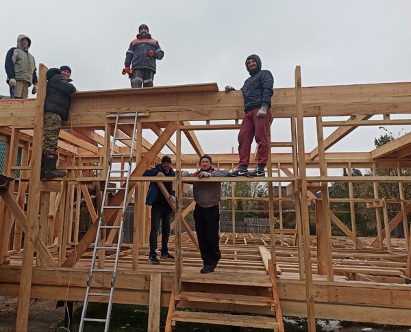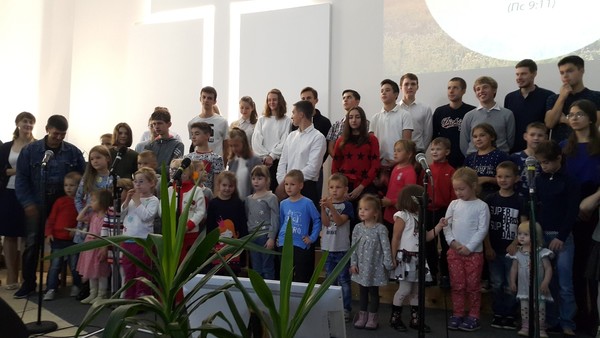 그 지역 회당장(류드밀라)이 회당에 있는 홀을 내어주어 집회와 예배처소로 3년정도 사용하게 되었고 그후에 지금의 건축된 장소로 옮겨 예배를 드리게 되었습니다. 현재 예배에 모이는 성도는 100여명 정도입니다. 첨부된 사진에 교회건축 현장이 있는데 모두가 교회 성도들입니다.