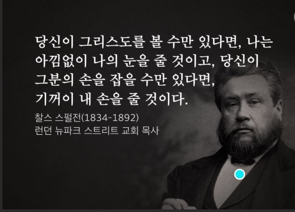 "청년이여, 이 말씀을 순종하고 예수를 쳐다보시오." 6개월 동안 죄의 문제로 고민하던 청년 스펄전은 명확한 확신이 생겼다. 그리고 그 순간의 확신을 일기장에 기록했습니다.
