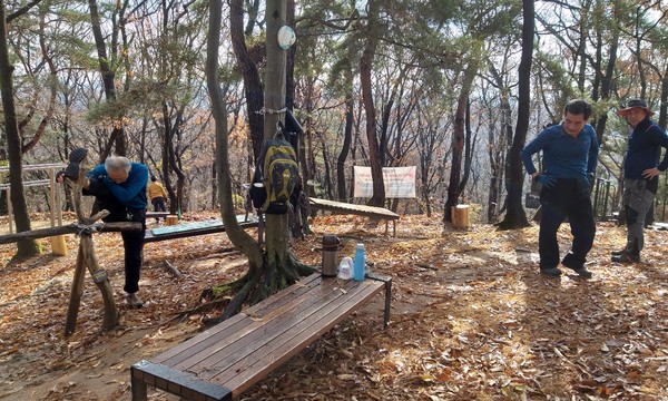 이 산의 특징이 성남시, 용인시, 광주시가 잇대어 있어서 그 어느 곳에서 올라오든지 한 30~40분 정도 소요되는 곳이고, 정상엔 정자와 간단하게 운동할 수 있는 시설이 있어 생각보다 많은 사람들이 매일 이 산을 찾습니다.