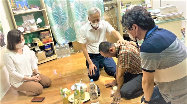• 빈민가 지역을 돌보고 있는 양곤실로암교회 허영선교사와 형제들.