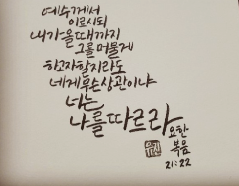 [요 21:20-23절] 베드로가 돌이켜 예수의 사랑하시는 그 제자가 따르는 것을 보니 그는 만찬석에서 예수의 품에 의지하여 주여, 주를 파는 자가 누구오니이까 묻던 자러라. 이에 베드로가 그를 보고 예수께 여짜오되 주여, 이 사람은 어떻게 되겠삽나이까? 예수께서 가라사대 내가 올 때까지 그를 머물게 하고자 할지라도 네게 무슨 상관이냐? 너는 나를 따르라 하시더라. 이 말씀이 형제들에게 나가서 그 제자는 죽지 아니하겠다 하였으나 예수의 말씀은 그가 죽지 않겠다 하신 것이 아니라 내가 올 때까지 그를 머물게 하고자 할지라도 네게 무슨 상관이냐 하신 것이러라.
