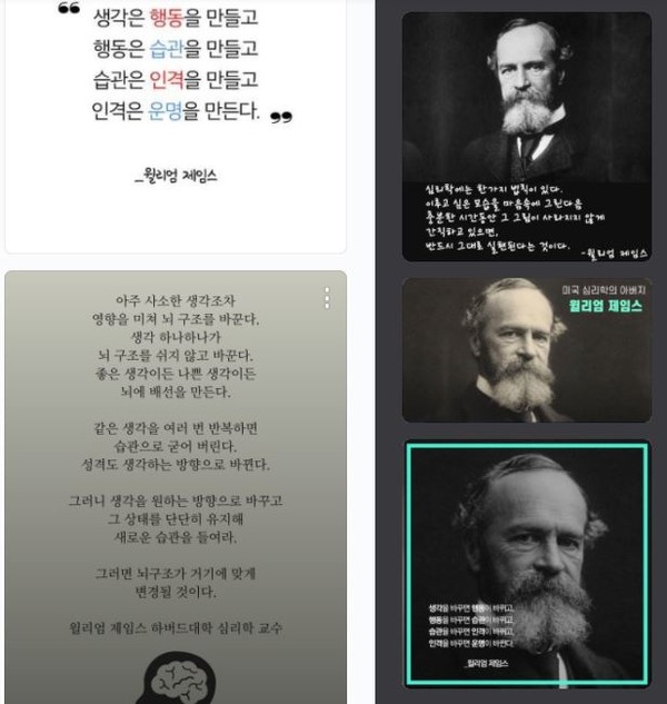 미국의 <철학자>요 <심리학자>인 <윌리엄 제임스(William James, 1842-1910) >가 27살 때 <신경쇠약증>에 걸렸습니다. 그는 더 이상 정상적인 생활을 할 수 없어 <정신 병원>에 입원하게 되었습니다. 하지만 낙담과 공포와 두려움 때문에 그의 병은 오히려 더 악화되기 시작했습니다. 정신병으로 죽을 것을 생각하자 겁이 났습니다. 그는 오직 자신을 도와 줄 분은 하나님 밖에 없다는 생각을 하며 성경을 읽기 시작했습니다. 그는 그때부터 자고 깨면 온종일 오직 <말씀>을 소리 내어 읽으며 외우는 일에만 열중했습니다. 그리고는 깨끗하게 나음을 받았습니다. 그는 ‚내가 성경말씀을 외우지 않았더라면 나는 완전히 미치광이가 되었을 것입니다! 라고 했습니다. 그는 젊은 시절의 자신의 정신병에 대한 고통을 책으로 써서, 미국의 유명한 <심리학자>가 되었습니다.