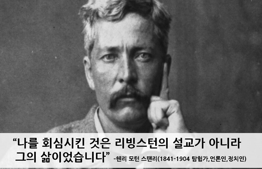 1871년에 아프리카의 개척자요 선교사인 리빙스턴(D.Livingstone)이 본국과 연락이 두절되었다. 당시 헨리 모턴 스탠리(Henry Morton Stanley) 기자는 위험을 무릅쓰고 리빙스턴 선교사를 찾아 아프리카 내륙으로 나섰다. 고생 끝에 탄자니아 마을에서 병마와 싸우고 있던 리빙스턴을 발견했다. 스탠리는 밀림에서 리빙스턴과 함께 10개월 동안 생활하였다. 무신론자였던 스탠리는 신앙의 편견을 가지고 아프리카로 갔다. 하지만 리빙스턴과 같이 생활하면서 반성의 시간을 갖게 되었다. 그리고 자신에게 질문했다. '도대체 리빙스턴은 왜 여기서 고생을 하고 있는가? 무엇 때문인가? 무엇이 그를 이토록 감동시키고 있는가?'