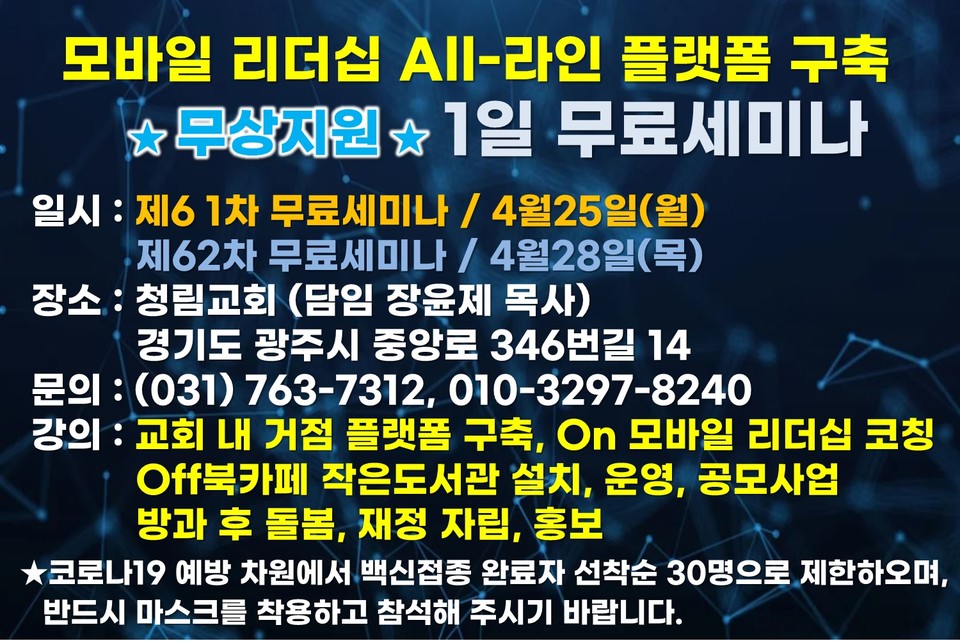 모바일 리더십 All 라인 플랫폼 구축 무상지원 무료 세미나