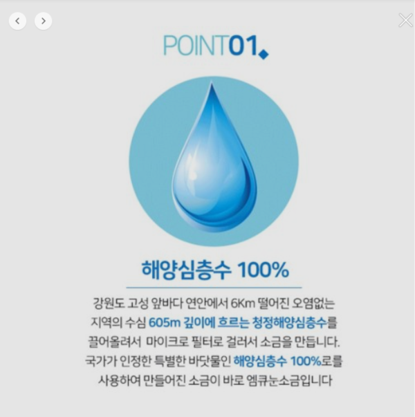 이제 현명한 소비자는 어떠한 바닷물로 어떠한 제조공정을 통해 어떤 성분의 미네랄이 얼마나 함유되어 있는지를 확인하고 선택하여 자신과 가족들의 건강을 지킨다.