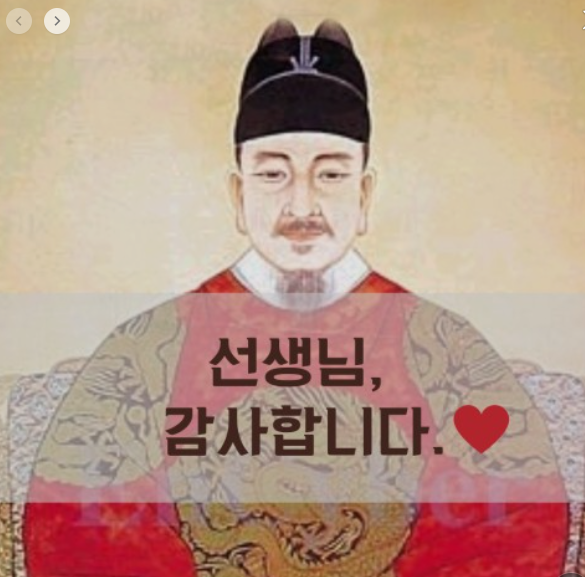 우리나라 선생님 중에서 제일 훌륭한 선생님은 일반적으로 세종대왕으로 생각하는 사람들이 많습니다. 왜냐하면 우리에게 글을 가르쳐 주어서 무식에서 우리를 해방시켰기 때문입니다.