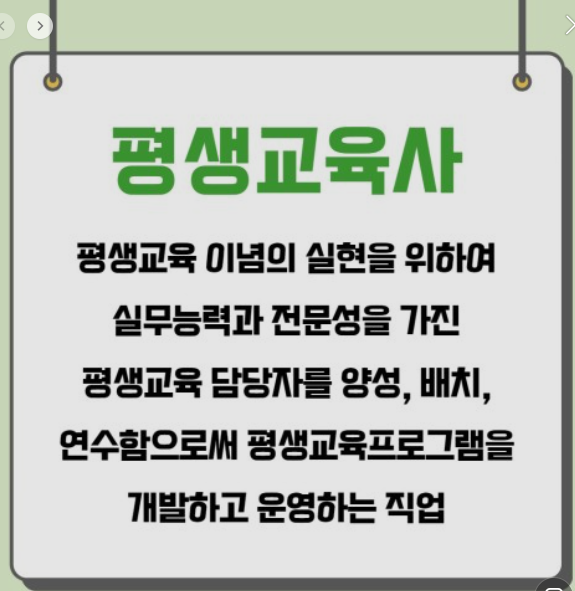 요즈음은 평생을 교육하는 시대가 되었습니다. 제가 평생 교육사 자격증을 가지고 다문화 회사의 평생 교육사 슈퍼바이저로 교육을 담당하고 있습니다.