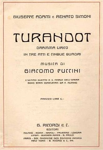 이 3막 오페라는 그가 후두암으로 인한 심장마비로 1924년에 사망하기 전까지 작곡되다 결국 미완성, 유작으로 남았던 곡이며 그의 밀라노 음악원 후배, 작곡가인 프랑코 알파노(Franco Alfano, 토리노 음악원장 1875-1954)가 완성하여 1926년4월25일 그의 절친 아르투로 토스카니니( Arturo Toscanini 1867–1957)의 지휘로 밀라노의 라 스칼라좌 가극장에서 초연된 곡이다.