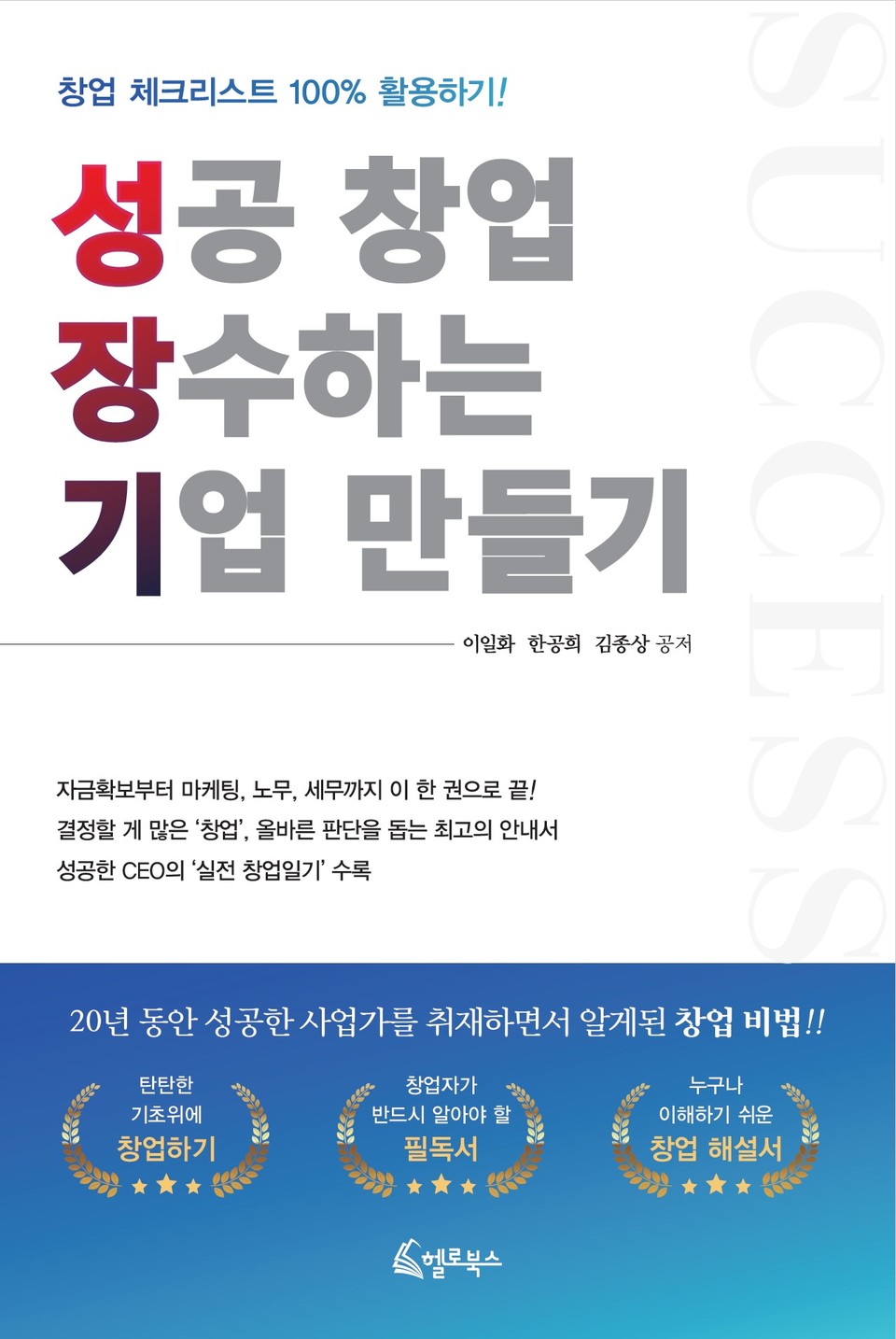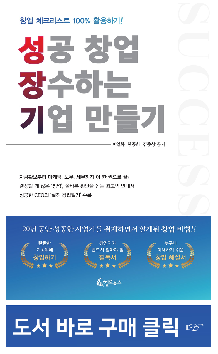 "『성공 창업, 장수기업 만들기』는 3명의 현직 세무사들이 말하는 사업의 노하우이다. 지난 20년 간 수많은 자영업자와 사업체를 상대하다보니 사업 성공의 노하우가 환하게 보인 것이다. 특히 저자 중 이일화 씨는 《부자의 습관부터 배워라》 라는 베스트셀러의 저자로 성공하는 자세를 꼼꼼히 짚어주고 있다."