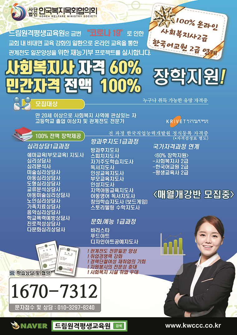 장윤제 목사는 "코로나19로 인한 대면활동에 제약을 비대면 온라인으로 누구나 회원만 가입하면 무료로 이용 할 수 있는 드림원격평생교육원을 개설해 다양한 70여개의 관계전도 전문가양성을 위한 리더쉽코칭을 운영하고 있으며 교회가 무상으로 경력단절 주부들에게 취업 경쟁력 강화와 삶의 질 향상을 위해 민간자격과정을 제공하고 있다"라고 밝히며, "드림원격평생교육원에 회원가입만 하면 누구나 도서관 운영에 필요한 독서지도사, 독서논술지도사, 글쓰기. 토의토론, 방과후지도, 인성지도, 진로적성, 자기주도학습코칭 교육을 무상으로 지원하는데 이런 컨텐츠를 교회가 지역민들에게 제공할 수 있다"라고 말했다.