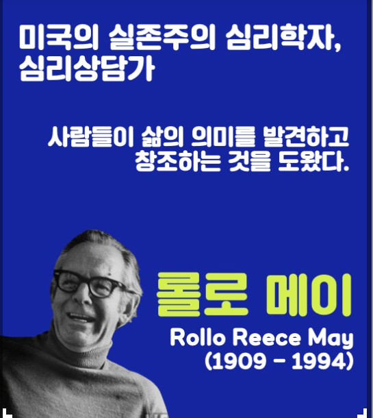 하나님은 <롤로 메이(Rollo May, 1909-1994)>라는 학생에게 그의 이 같은 심적 고통을 보게 하셨습니다. 어느 날 경직된 마음으로 강의를 끝내고 집으로 돌아온 그는 우편함에서 카드 한 장을 발견했습니다.