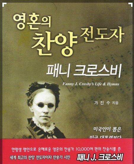 그녀는 15살에 맹인학교(盲人學校)에 들어가 공부를 시작했는데, 그때부터 그녀의 <문학적 재능>이 드러나기 시작했습니다. 그녀는 그때부터 <찬송 시>를 쓰기 시작하여, 일생 동안 무려 <8000여편>의 찬송 시를 썼습니다. 그녀는 자신에게 닥쳐온 고난과 시련, 불행과 역경을 <하나님의 말씀>과 <믿음의 기도>로 <극복> 해냈고, <긍정적인 신앙자세>로 <하나님께 온전히 헌신>하여, 오히려 그 누구보다도 더 소중히 하나님께 쓰임 받는 은총을 덧입었습니다.