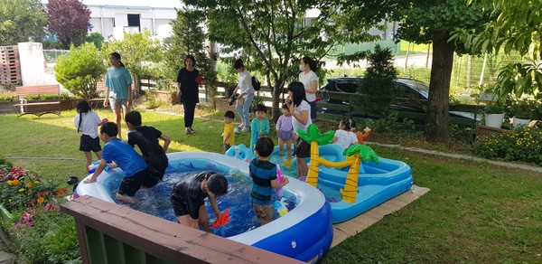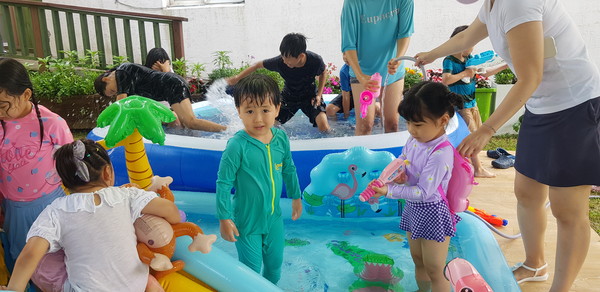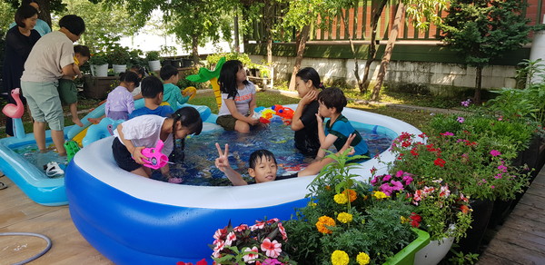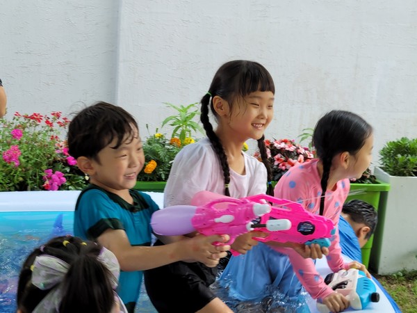 어린이부장을 막고 있는 전세진 집사는 "긴긴 코로나 이후 다시 문을 연 유초등부 여름수련회, 무더운 여름 날씨에 막상 준비하는 것이 쉽지 않았다. 교회 마당에 햇빛을 가리는 가림막과 야외물놀이장을 설치하고, 아이들이 학습할 공간마다 데크레이션을 준비하는 선생님들의 수고와 하계수련회를 위해 아이들의 간식과 식사를 준비하는 성도들의 헌신과 땀방울이 하나 되어 이루어진 값진 작품"이었다고 한다.