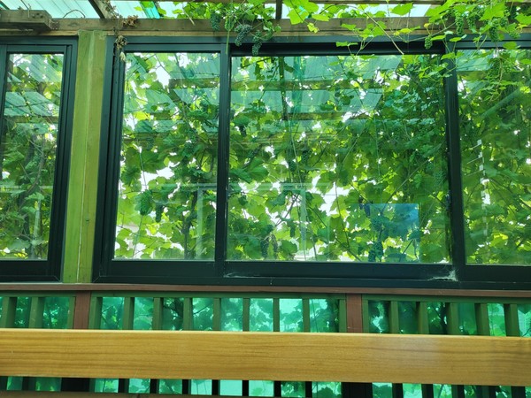 교회 도로 옆에는 머루나무가 바깥세상을 차단해주고 있다. 파란 잎사귀와 열매를 바라보는 것만으로도 치유와 회복이 일어난다. 머루나무는 대개 가느다란 몸통과 줄기가 특색이다. 그런데 20년을 가꾸다보니 기둥과 줄기가 단단하고 굵어 믿음직스럽다. 20년이 되어서 그런지 나의 삶의 동반자처럼 여겨진다.