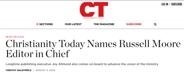 미국 복음주의 최대 잡지 “크리스채너티 투데이” 새 편집 장으로 러셀 무어를 임명했다. 22년 8월 5일자 크리채니티 투데이의 보도에 따르면, “ 9월 1일자로 러셀 무어(Russell Moore)가 크리스채너티 투데이의 편집장을 맡게 되는 것을 알리게 된 것을 매우 기쁘게 생각한다.”고 보도했다.