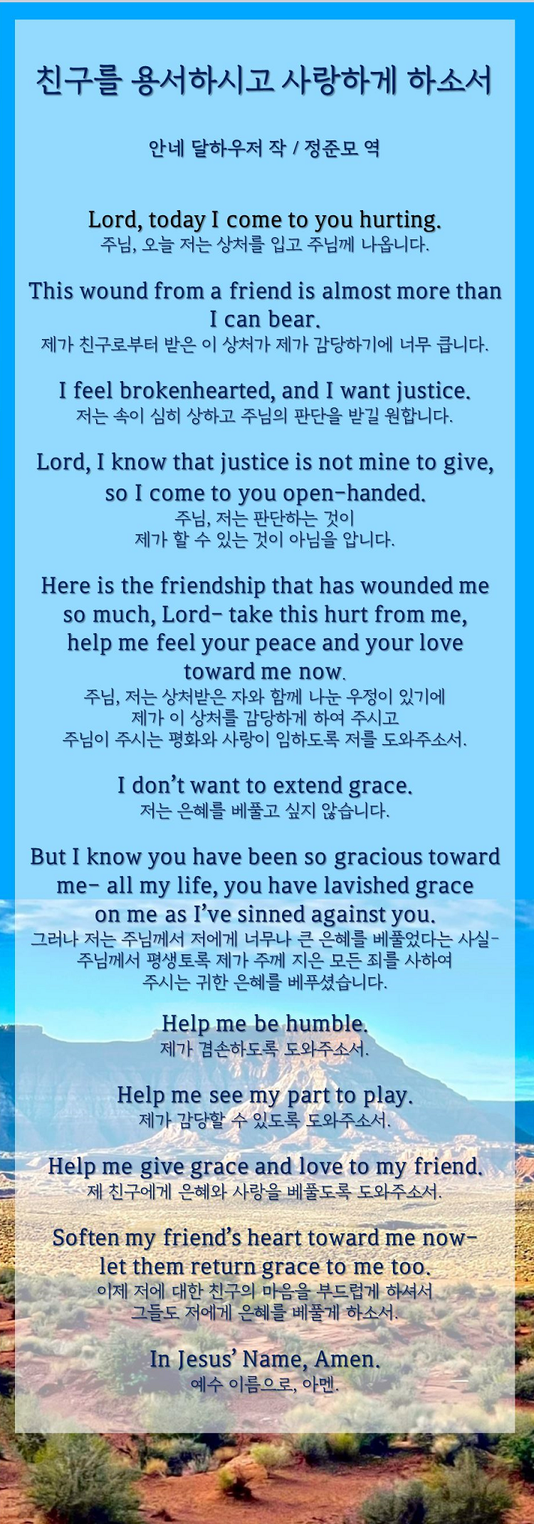 제 친구에게 은혜와 사랑을 베풀도록 도와주소서.