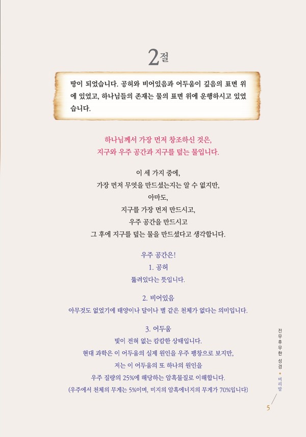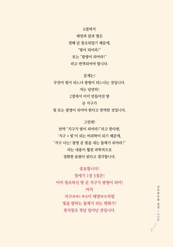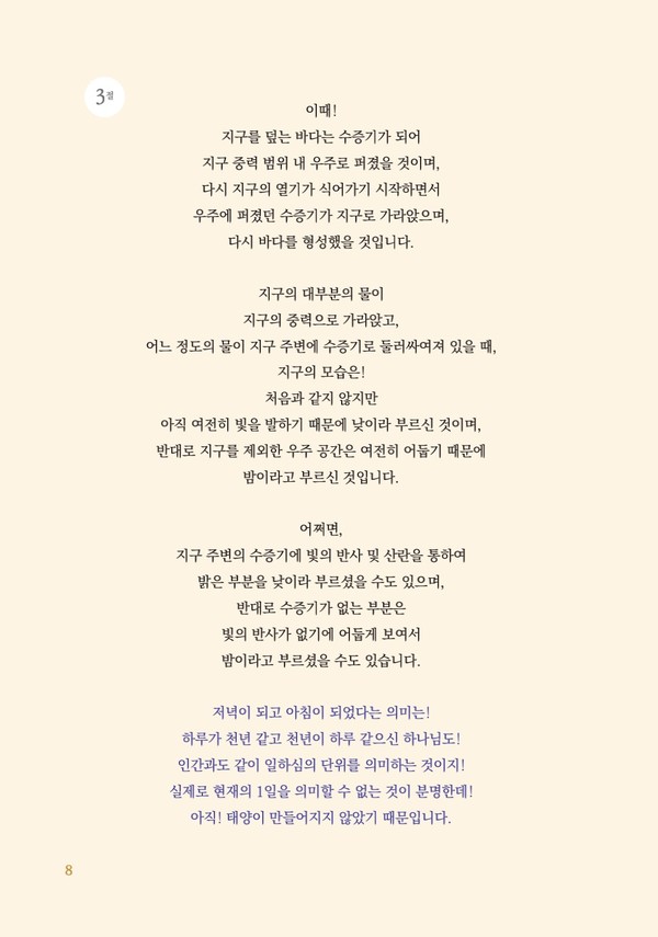 갈릴레오 갈릴레이의 “그래도 지구는 돈다.”와 같은 믿기지 않는 이제껏 발견하지 못한 새로운 사실들이 이 책을 읽으시는 누구에게나 놀라운 흥분들로 다가올 것이며 기존에 창세기를 읽어보신 분들이라면 ‘창세기가 이런 내용이었어?’하고 놀라움을 금치 못할 것이며 처음 창세기를 접하시는 분들도 쉽고도 흥미진진한 내용에 눈을 뗄 수가 없을 것입니다.