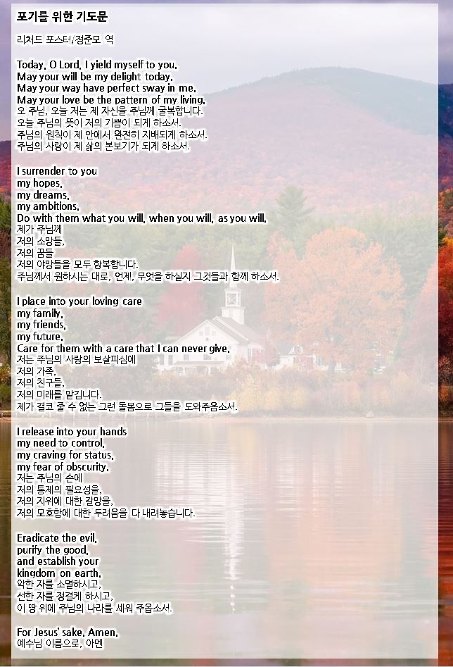 오 주님, 오늘 저는 제 자신을 주님께 굴복합니다.