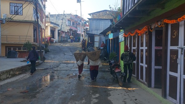 산 등성이에 상가가 모여있고, 좌 우 비탈면을 따라 마을이 형성되어 있는 전형적인 네팔의 산마을입니다.