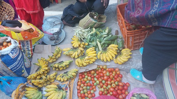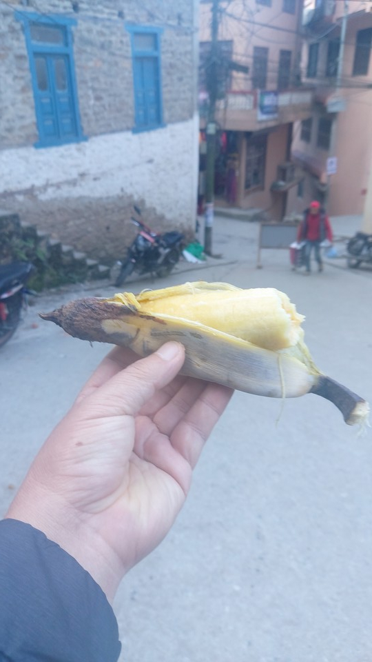 난전이 끝나는 지점에서 엄청 큰 바나나를 팔고 계신 분이 계셔서 하나 사서 먹어보았는데 엄청 맛있습니다. 네팔의 고유 바나나인데 시골장터에서나 맛 볼수있다고 합니다.