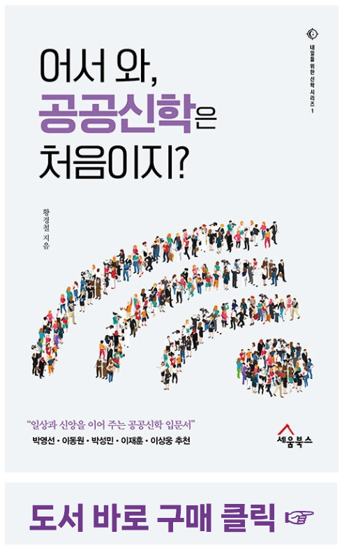 이 책은 황경철 박사가 그의 박사논문에서 다룬 주제를 구어체로 알기 쉽게 소개한 신간이다. ‘공공신학’(또는 공적 신학, public theology)을 처음 접하는 이들도 큰 어려움 없이 다가설 수 있는 ‘공공신학 입문서’다.