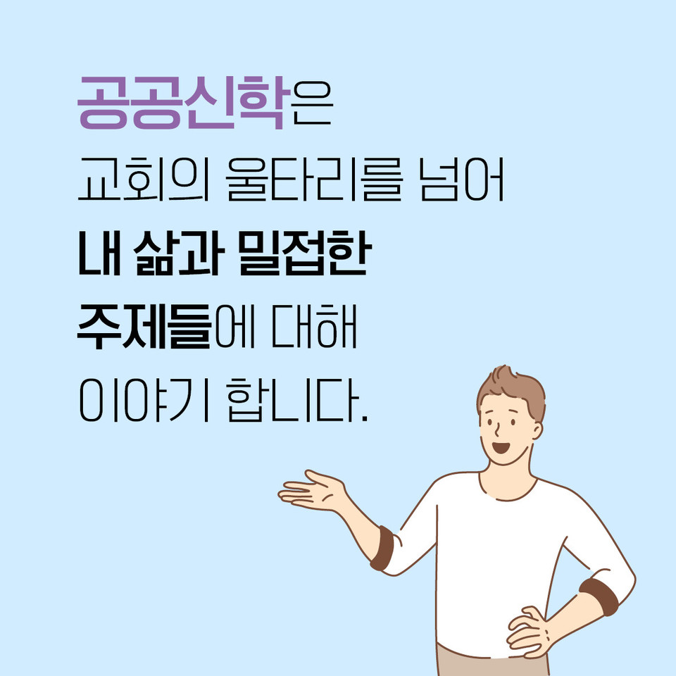 모든 성도들 이 책을 읽고서 공공신학을 이해하는 정도가 아니라, 각자의 위치에서 공공신학의 작업들을 할 수 있기 바랍니다. 이 책은 그 일을 위한 준비를 갖추도록 하는 가장 좋은 책입니다. - 이승구 (합동신학대학원대학교 조직신학 교수)