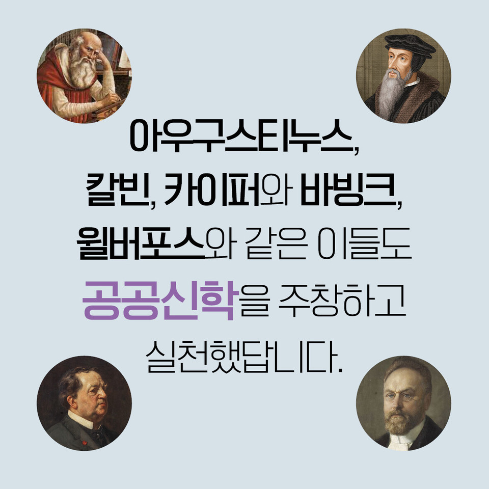 뿐만 아니라 하나님은 가난한 자, 고아와 과부, 외국인을 돌아보라고 명령하셨다. 하나님은 그들의 생계와 필요에 깊은 관심을 가지고 계시다. “너희가 너희의 땅에서 곡식을 거둘 때에 너는 밭모퉁이까지 다 거두지 말고 네 떨어진 이삭도 줍지 말며 네 포도원의 열매를 다 따지 말며 네 포도원에 떨어진 열매도 줍지 말고 가난한 사람과 거류민을 위하여 버려두라 나는 너희의 하나님 여호와이니라”(레 19:9,10). 공공신학은 성경과 신학의 근거 위에서 논의되는 신학의 한 분야다.