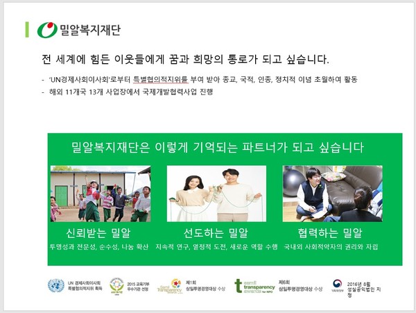 관련기사 장애인 권익 기금 마련을 위한 『밀알나눔 음악회』 개최 우크라이나를 위한 평화 콘서트, 전쟁이 종식 될 때까지 계속 돼 【밀알복지재단】콘서트 '힘내요, 우리' 라이브방송 안내 【뉴스】 사회복지법인 밀알복지재단 경기지부, 본헤럴드와 업무 협약 맺어