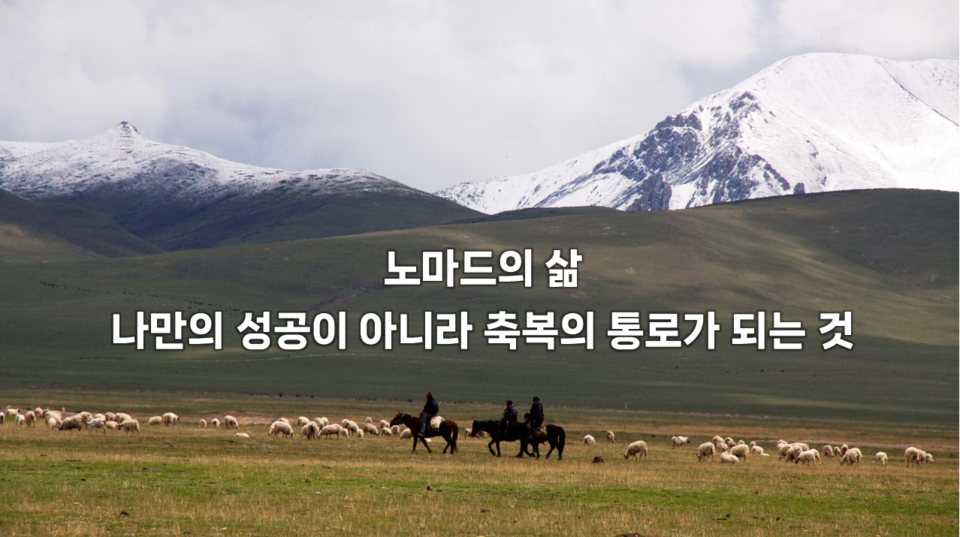 노마드의 삶을 사는 사람들은 끝없이 성공을 찾아 헤매는 것이 아니라, 축복의 땅을 찾아 헤매는 것이 아니라, 여러분 까닭에 그 땅이 축복의 땅으로 변하는 것입니다. 회사가 잘되고 이웃이 잘되는 것입니다.
