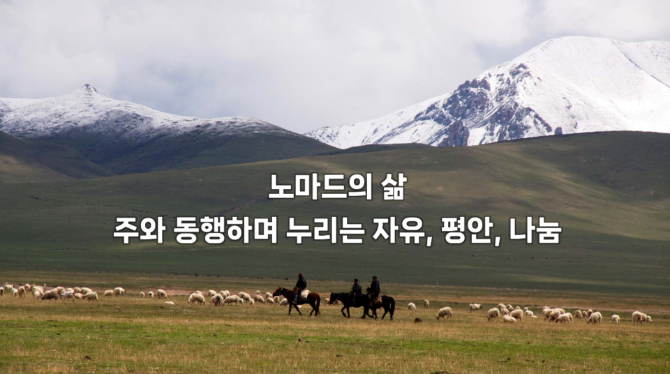 결론으로 말씀드립니다. 신앙인의 삶은 노마드 유목민의 삶입니다. 십자가 지고 주님만 바라보며 그 안에서 기쁨으로 살아갈 때 누려지는 참된 평안과 참된 만족입니다. 노마드의 길을 걸어감에 있어서 힘에 벅차도록 어두움의 터널도 있지만, 그때마다 주님은 어느새 내 곁에 동반자가 되어 주셨고, 피난처와 바위와 요새가 되어 주셨습니다. 그리고 그곳에서 주님은 나의 전부가 되셨고, 나의 찬양과 영광이 되어 주셨습니다. 십자가에서 하나가 되듯이 우리는 노마드의 삶에서 천국의 은혜와 능력과 풍요를 맛보며 살 수 있습니다. 이런 귀한 노마드의 삶이 주님으로 인해 여러분의 삶에 큰 축복과 능력이 되어 나타나기를 주님의 이름으로 축원합니다.
