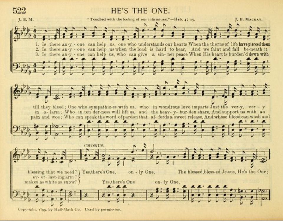 작사·작곡자: 근심 걱정(1절), 무기력, 무능(2절), 평안, 죄 문제(3절), 공포, 죽음의 검은 구름(4절)등 심각한 영적 문제들을 제기하며 이를 해결해 주실 자가 '있을까?','누굴까?'라는 질문을 통해 '예수밖에 누가 있으랴!‘(후렴)는 해답을 제시하며, 예수 그리스도를 위로자(1절), 구원자(2절), 성결케 하시는 자(3절), 인도자(4절)로 소개하고 있는 이 찬송은 죤 멕케이(J.B.Mackay, 19C)목사가 1899년에 작사․작곡한 찬송이다.