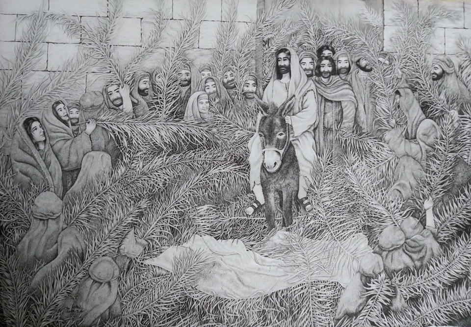 종려나무 가지를 가지고 맞으러 나가 외치되 호산나 찬송하리로다 주의 이름으로 오시는 이 곧 이스라엘의 왕이시여 하더라